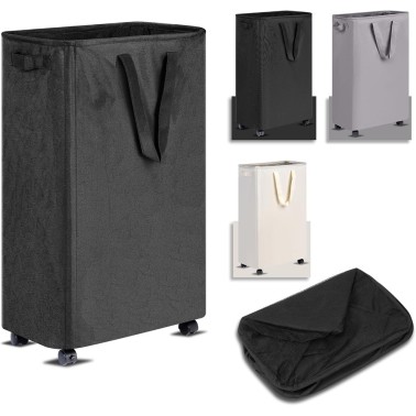洗濯かご ランドリーバスケット 洗濯かご 折りたたみ 容量48L 洗濯物入れ 洗濯カゴスリム 撥水加工 折りたたみ ランドリーバスケット ランドリー収納 キャスター付き 取っ手付き 幅40×奥行20×高さ60cm (ブラック)