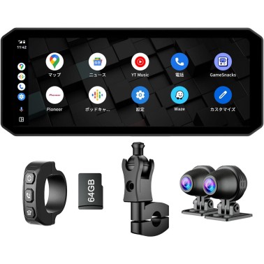 バイク ドライブレコーダー Carplay Android Auto対応 【7インチ大画面+TPMS機能+着脱式で盗難防止】 金属素材 耐熱耐衝撃性 1000nit高輝度 バイク ドラレコ 前後 150度広角 前後カメラ 1080P 煽り運転防止 スマートモニター 防水 ナビ/音楽/通話対応 インカム対応 64GBメモリカード付属 技適認証取得 DFS認証取得(MT01)