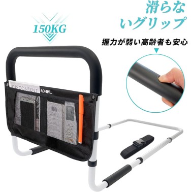 ベッドガード大人介護用サイドレール ベッド柵用 起き上がり手すり 手すりサイドレール ベッド落下防止アシストレール 収納ポケット付き ベッド手すりアシストバー 折りたたみタイプベッドガード (白い)