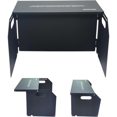 ウインドスクリーン カートリッジストーブ用の風よけ板 小さなテーブル 風防板 調味料ラックの多機能一体型 黒い炭素鋼板製造 高さ25cm 倒れにくい 強風に耐える 折り畳み設計 収納袋付き