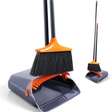ほうき ちりとり セット ほうき 室内 屋外 立て式 収納 4段ポール 長さ調節可能 41-117cm ノブ付き 防風 軽量 腰曲げず 掃除用品 アウトドア/玄関/ガーデニング/庭/ベランダ/美容室/コンビニ (オレンジ)