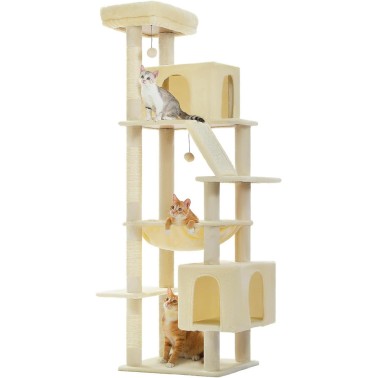 キャットタワー 大型猫用 スリム 多頭飼い 猫タワー 据え置き 猫 爪研ぎ 麻紐 ハンモック 猫ベッド 猫ハウス 猫のおもちゃ コンパクト 省スペース 人気 おしゃれ シンプル 階段 交換 隠れ家 安定 転倒防止ベルト 運動不足解消 – ベージュ 高さ175cm